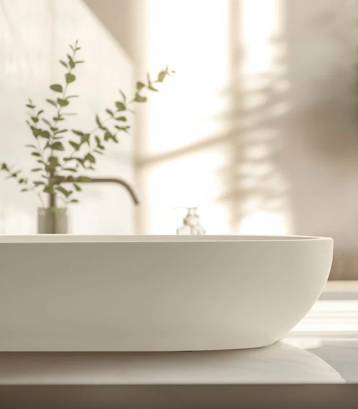 Cipì-Lavabo in resina solid surface HQ. Copripiletta nello stesso materiale inclusa.100% Made in Italy
