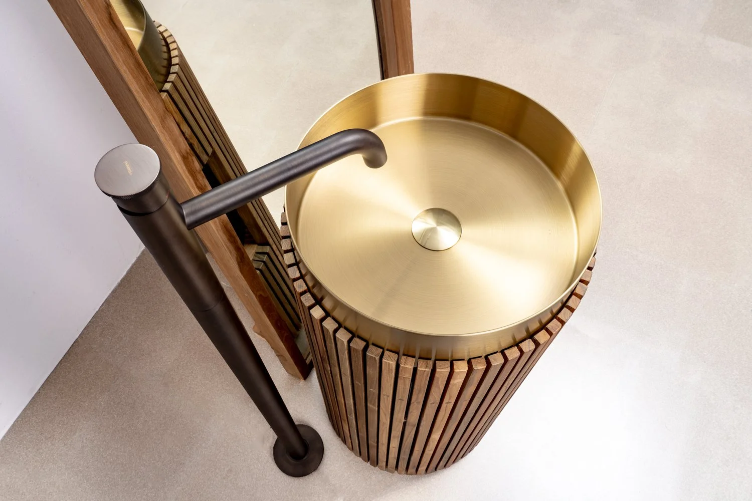 Cipì Lavandino in acciaio Inox SUS 304 di ben 3 mm di spessore con struttura porta lavabo in listelli di legno teak di recupero stagionato ed essiccato, impermeabilizzato, e trattato per resistere all’acqua. Trattamento di finitura del lavabo PVD+Nano coating e spazzolatura accuratissima. Dettagli preziosi come il copri piletta coordinato o la assenza della più piccola saldatura fanno di questi lavandini dei veri capolavori. Dotato di apertura sul retro per un comodo scarico a parete può essere ordinato anche interamente chiuso per scarico pavimento.